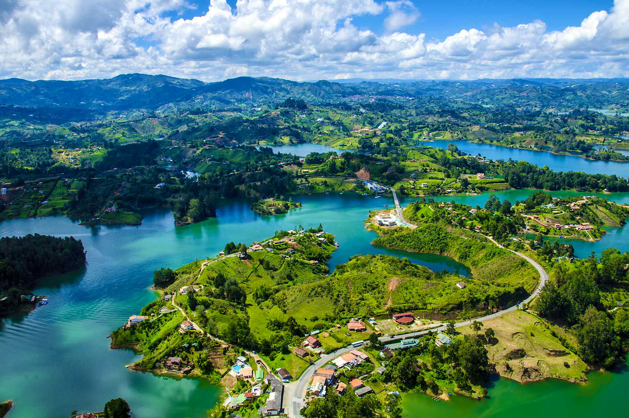 Head east to climb (or observe) the giant rock for panoramic reservoir views, then continue to Guatapeâs vibrant zocalosâa perfect two-stop route by car from the city, no boat or train needed if you remain on land vantage.