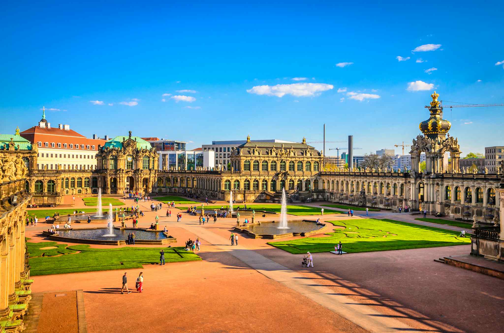The Zwinger houses world-renowned collections including the Old Masters Picture Gallery with works by Raphael and Vermeer, the Mathematical-Physical Salon with historical scientific instruments, and the Porcelain Collection featuring exquisite Meissen ceramics in ornate baroque pavilions.