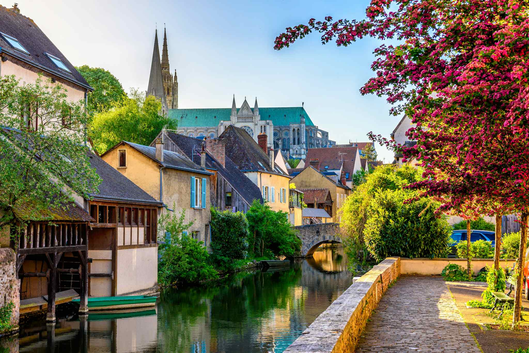 Begin your 3.5-hour Chartres visit at the cathedral, allowing at least 90 minutes to appreciate the architecture, stained glass, and labyrinth. Consider hiring a local guide or using the cathedral's audio guide to understand the symbolic imagery. Afterward, explore the medieval old town with its half-timbered houses, particularly along the Eure River in the picturesque Quartier de la Basse Ville. The steep pedestrian streets offer charming shops and cafes perfect for a lunch break before continuing to Chateau de Maintenon.
