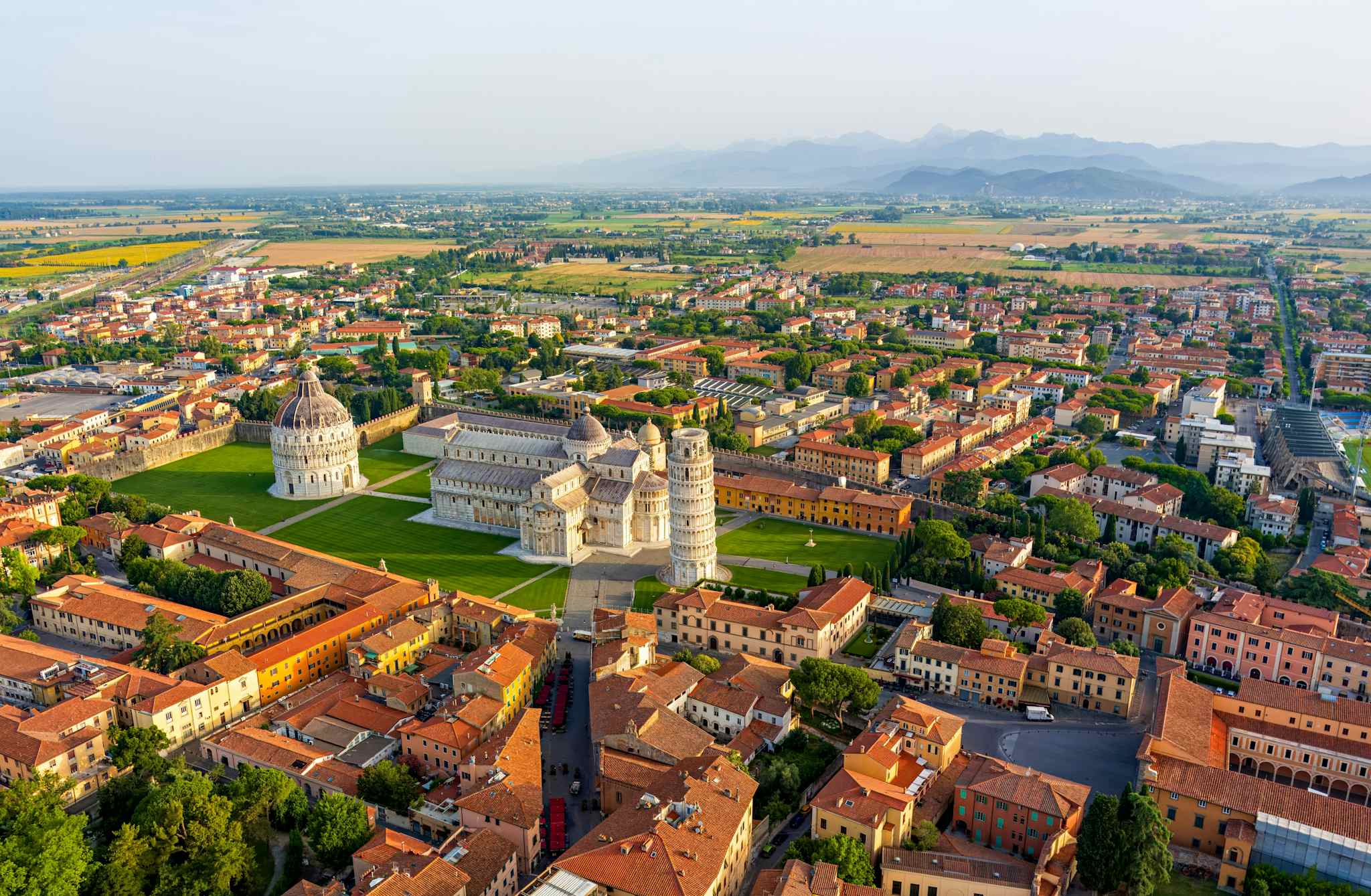 Leave Florence behind as cypress-lined roads lead you west, past rolling hills and golden fields. First stop: Pisa, where the Leaning Tower tilts into view like a surreal mirage. Then on to Lucca, where Renaissance walls cradle hidden gardens and bell towers. Your private car awaits as Tuscany unfolds outside your window.