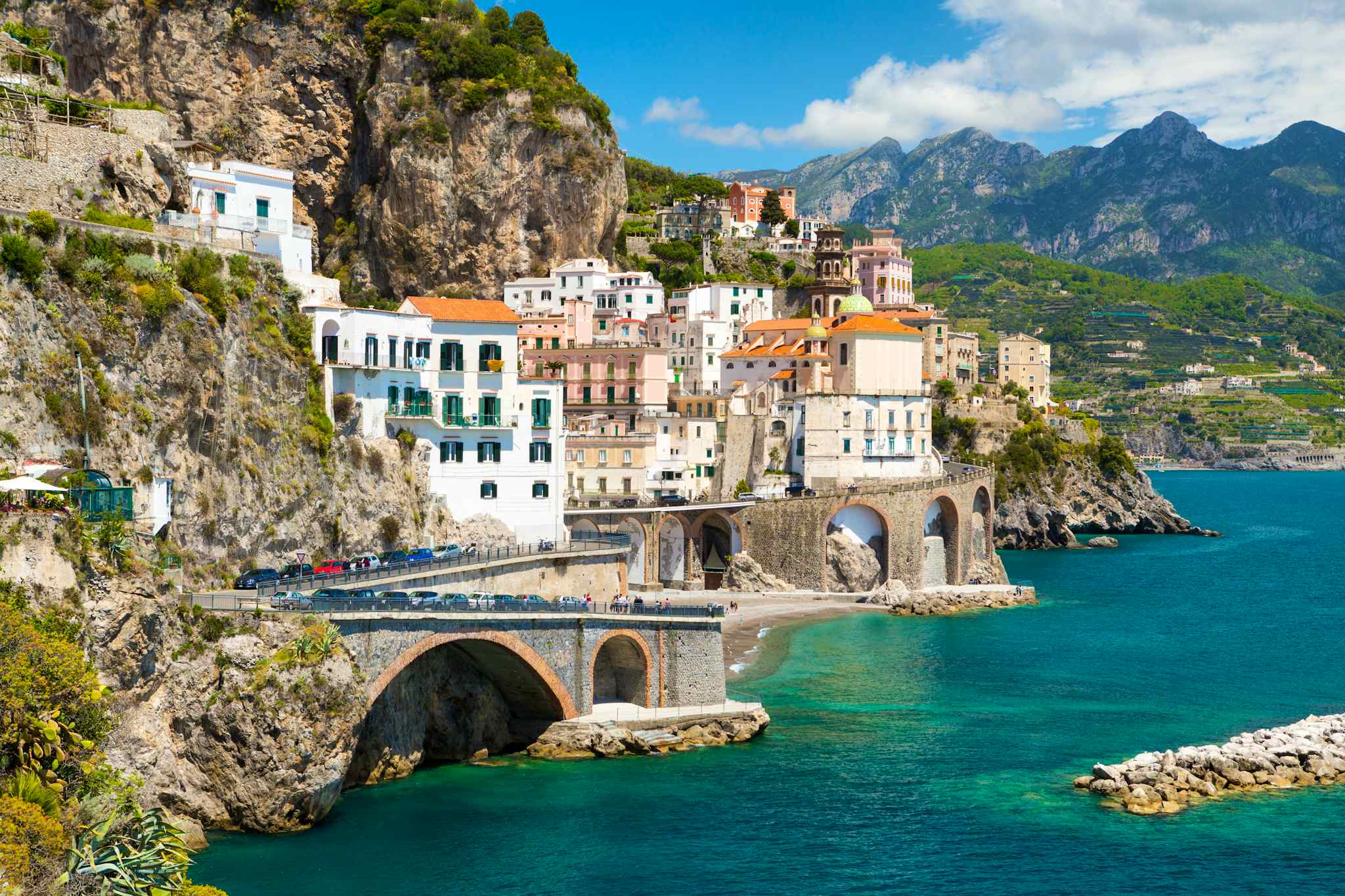 Cruise the scenic Amalfi Coast by car. Amalfi’s cathedral and historic maritime past anchor the route, while neighboring Atrani’s quiet alleys exude old world atmosphere, easily combined in one day.