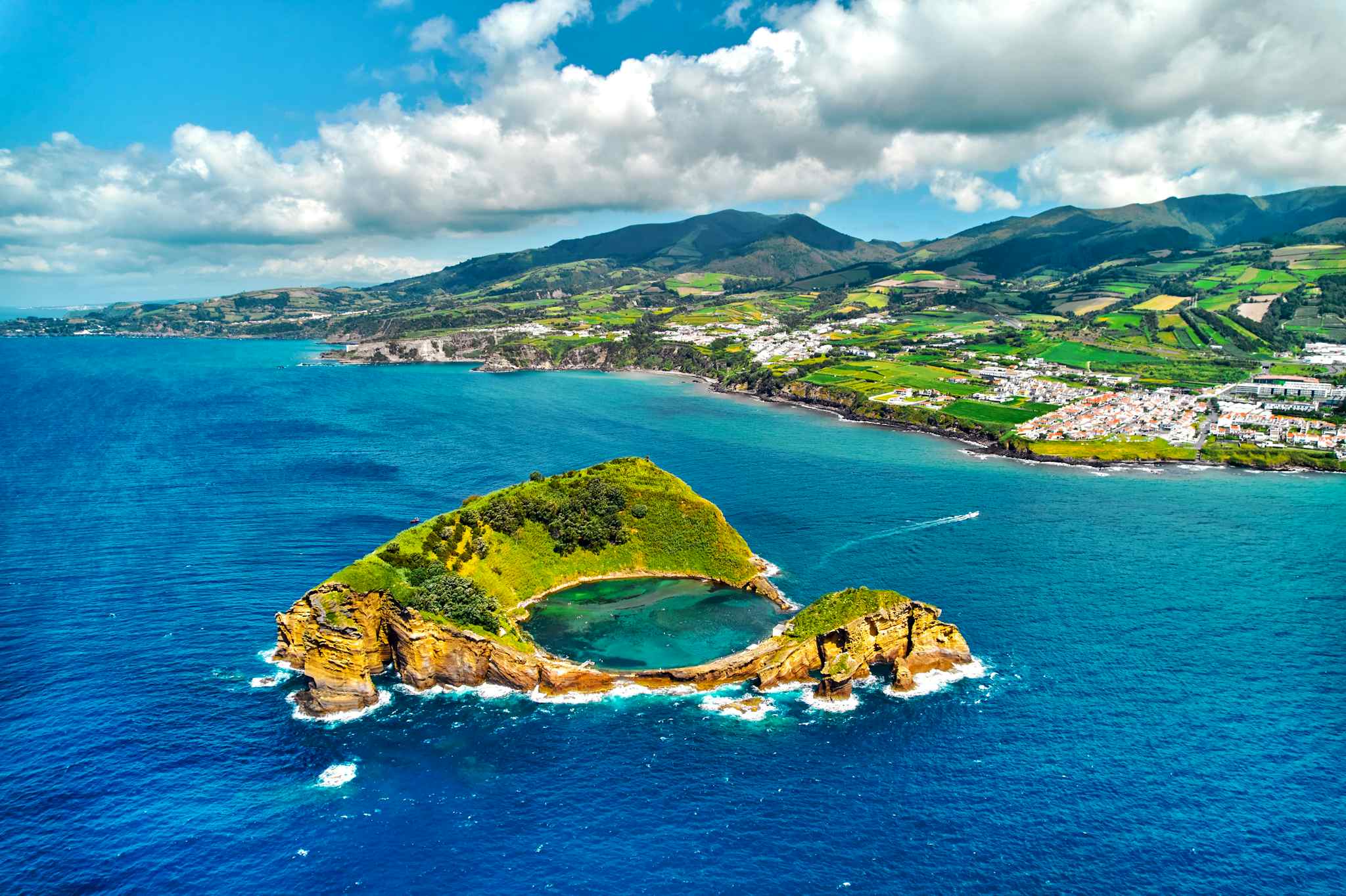 Vila Franca do Campo, Sao Miguel's former capital, offers historic charm with its churches, marina, and views of Ilheu de Vila Franca. During your 3-hour visit, explore the town center, try local queijadas pastries, and if interested, arrange a boat trip to the nearby islet nature reserve.